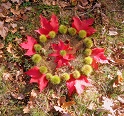 Puis vient la phase ou l’imaginaire se réactive. Après avoir ouvert les yeux sur toutes les petites merveilles : graines, feuilles, baies, fleurs, cailloux, écorces, mousse, lichen, terre, grain de sable de grosseurs différentes, de couleurs variées, plus que l’on ne pensait, on peut enfin débuter sa cueillette. Comparer et récolter ce qui nous semble intéressant …et surtout pas plus, juste ce qu’il nous faut!