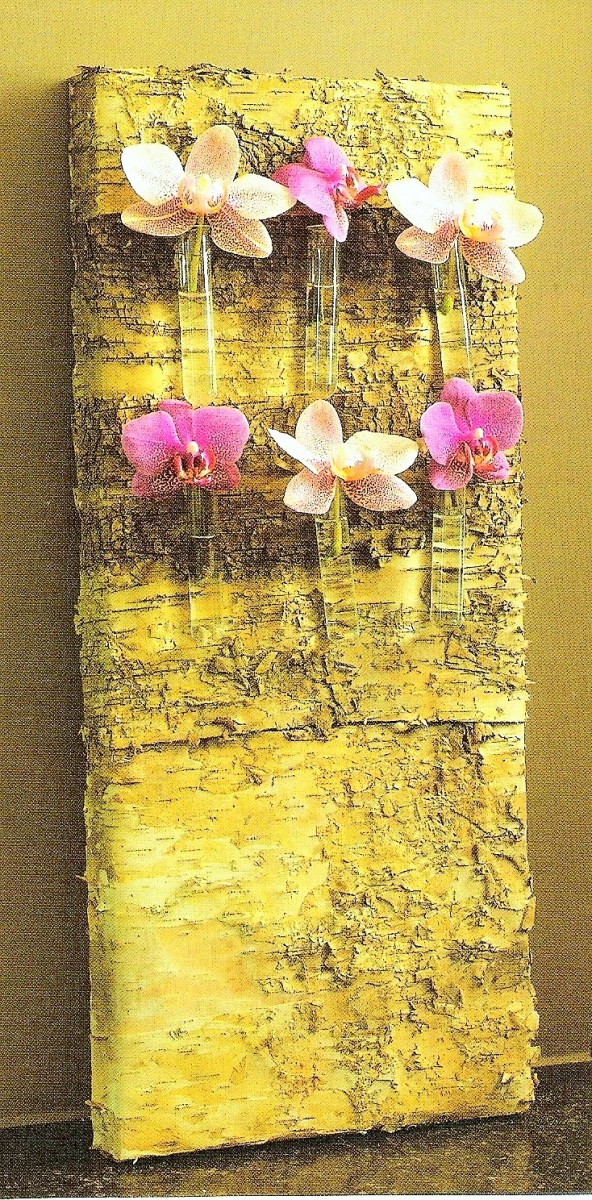 Tableau recouvert d’écorces, orchidée naturelles