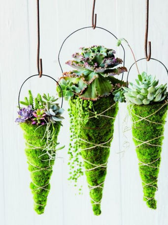 Moins classique, le substrat du kokedama peut aussi être recouvert par de la ficelle,et jouer sur les finitions: dentelles, fils de couleurs et même sur sa forme traditionnelle faisant évoluer son design en boule!
