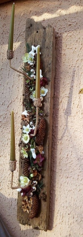 Partir d’une simple branche de bois, d’une planche ou même d’un morceau de métal tordu, offre à l’imagination des possibilités extraordinaires pour créer un objet unique, une décoration personnalisée! De la simple guirlande horizontale au bougeoir, et naturellement pour des couronnes de Noël originales, des guirlandes verticales le « bricolage floral » réinvente l’art floral traditionnel. Avec des fleurs naturelles ou stabilisées voir en permanent (tissu) ces nouvelles techniques d’assemblages, permettent de réaliser des tableaux végétalisés, des sculptures à base de bois flotté qu’il est possible au fil des saisons d’enrichir, de modifier, de réutiliser selon vos souhaits.