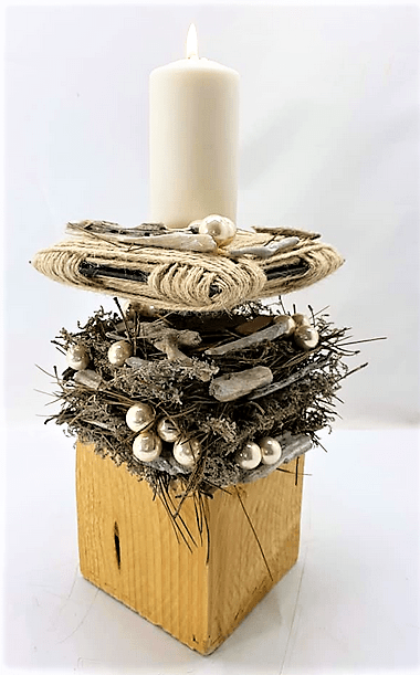 C’est fou ce que l’on peut créer aussi avec du bois, flotté ou même un simple cube !Une bouteille vide et hop elle se transforme en bougeoir! Contactez moi, selon les demandes je pourrais l’ajouter au programme!