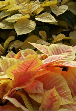 Quand aux « fleurs » ce ne sont pas les feuilles rouges, roses ou blanches mais les petites bractées jaunes orangées au centres des feuilles. Elles vont finir par tomber, c’est normal! L’été il supporte le soleil du matin, de l’après midi, mais il faudra alors lui donner davantage à boire!